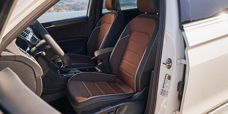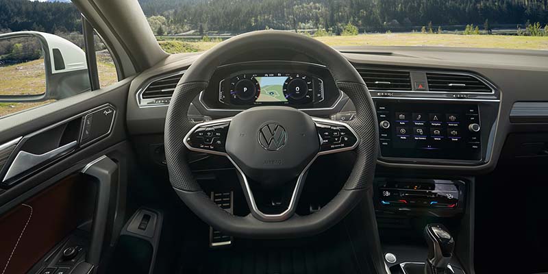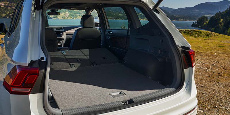 Inside the new Tiguan, you'll find three rows of spacious seating for up to seven people. You get plenty of space inside the S trim level, heated front seats, cloth seating throughout, a 6.5-inch touchscreen display with smartphone integration, and an 8-inch digital instrument display within the modernized Volkswagen digital cockpit. The SE comes with V-Tex leatherette seating, a Climatronic touch dual-zone automatic temperature control, an 8-inch touchscreen display, and wireless charging. The SE R-Line Black offers multi-color adjustable ambient lighting, and the SEL R-Line adds leather seating with cooling front seats.
