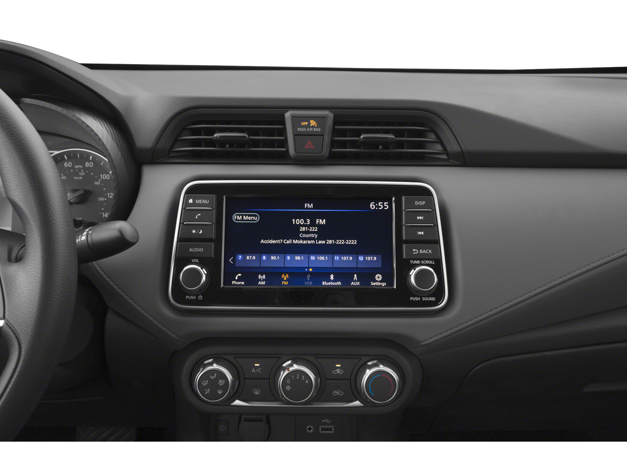 - Radio: AM/FM Audio System -inc: RDS, MP3, aux-in, 7" Advanced Drive-Assist Display, NissanConnect featuring Apple CarPlay and Android Auto, Bluetooth® hands-free phone system, streaming audio via Bluetooth®, interface for iPod and other compatible devices, hands-free text messaging assistant, Siri Eyes Free/Google Assistant voice recognition, 4 speakers and 3 USB ports (2-charge only)