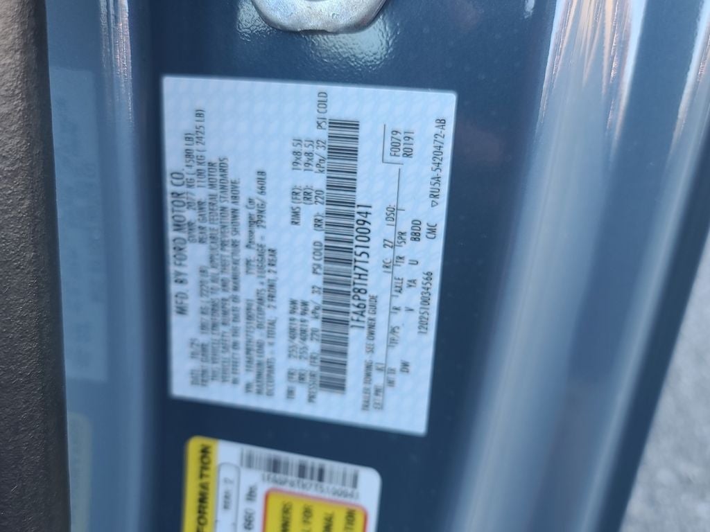 Bronze Appearance Package (Sinister Bronze Front and Rear Pony Badges and Wheels: 19 x 8.5 Sinister Bronze Painted Aluminum), 1st Row Carpeted Black Floor Mats, 4-Wheel Disc Brakes, ABS brakes, Air Conditioning, Alloy wheels, AM/FM Stereo, Auto High-beam Headlights, Automatic temperature control, Brake assist, Bumpers: body-color, Compass, Delay-off headlights, Driver door bin, Driver vanity mirror, Dual front impact airbags, Dual front side impact airbags, Electronic Stability Control, Emergency communication system: 911 Assist, Engine Block Heater, Exterior Parking Camera Rear, Four wheel independent suspension, Front anti-roll bar, Front Bucket Seats, Front Center Armrest, Front dual zone A/C, Front reading lights, Fully automatic headlights, Illuminated entry, Knee airbag, Leather Shift Knob, Low tire pressure warning, Occupant sensing airbag, Outside temperature display, Overhead airbag, Overhead console, Panic alarm, Passenger door bin, Passenger vanity mirror, Power door mirrors, Power steering, Power windows, Premium Floor Liners Front and Rear (with Carpet Mats), Radio data system, Rain sensing wipers, Rear anti-roll bar, Rear Parking Sensors, Rear window defroster, Remote keyless entry, Speed control, Speed-sensing steering, Speed-Sensitive Wipers, Split folding rear seat, Sport steering wheel, Steering wheel mounted audio controls, SYNC 4, Tachometer, Telescoping steering wheel, Tilt steering wheel, Traction control, Trip computer, Variably intermittent wipers, Voltmeter, Wedge Decklid Spoiler, and Wheels: 18 x 8 Painted Shadow Silver Cast Aluminum.