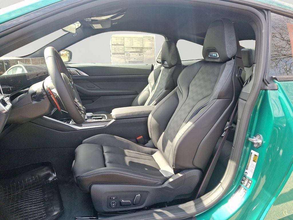 Crafted with an eye for detail, the M4 Competition's exterior boasts the striking Isle of Man Green Metallic finish, complemented by the M Shadowline Lights and the bold presence of the Carbon Fiber Trim. Step inside and discover the refined comfort of the Front Ventilated Seats, designed to keep you cool and focused during spirited drives.