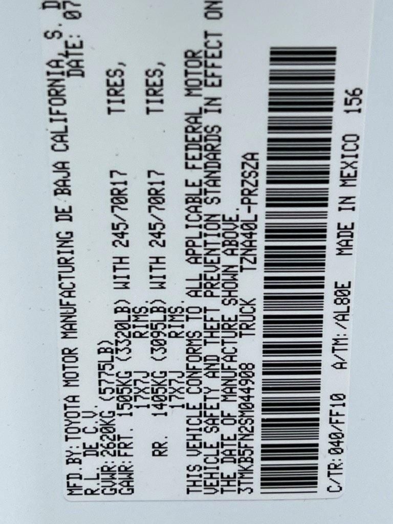 - Vehicle Name: Toyota Tacoma 2WD