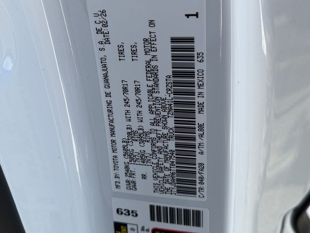 - Vehicle Name: Toyota Tacoma 2WD