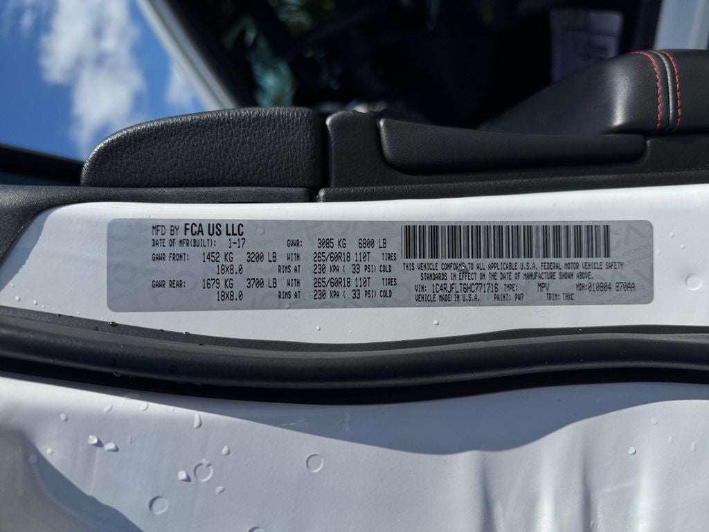 Take your driving experience to the next level with this 2017 Jeep Grand Cherokee Trailhawk 4x4, a rugged yet refined SUV built for both adventure and everyday comfortperfect for drivers in Jacksonville, St. Augustine, Orange Park, Fleming Island, and surrounding areas. Finished in Bright White Clear Coat with a bold Black and Ruby Red interior, this Trailhawk stands out with aggressive styling including red tow hooks, black hood decal, and off-road aluminum wheels. Under the hood, the powerful 5.7L HEMI V8 delivers serious performance, paired with an 8-speed automatic transmission for smooth, responsive driving both on and off the road. Equipped with Jeeps legendary Quadra-Drive II 4WD system, Quadra-Lift air suspension, and Selec-Terrain traction management, this Grand Cherokee is ready for anythingfrom beach driving in Northeast Florida to weekend trips beyond. Selec-Speed control and an electronic limited-slip differential give you confidence in any condition. Inside, comfort meets capability with leather and suede Trailhawk seating, heated and ventilated front seats, heated rear seats, and a heated steering wheel. Dual power seats with memory ensure a personalized driving experience every time you get behind the wheel. Technology is front and center with the Uconnect 8.4 system, featuring an 8.4-inch touchscreen, navigation, Bluetooth® connectivity, and premium audio with a 506-watt amplifier and subwoofer. Rear-seat entertainment with dual screens keeps passengers engaged on long drives. Safety is just as impressive, with advanced features including adaptive cruise control, forward collision warning, lane departure warning, blind spot monitoring, and park assist for added confidence in traffic and tight spaces. The dual-pane panoramic sunroof brings in natural light and fresh air, while additional upgrades like rain-sensing wipers, HID headlamps, and LED lighting enhance both visibility and style. If youre searching for a high-performance SUV in North Florida or South Georgiaincluding Kingsland, Daytona, Deland, or Tallahasseethis Grand Cherokee Trailhawk delivers capability, luxury, and power in one complete package. What truly sets us apart is our guest-centric approach and full transparency in every interaction. Your experience always comes first, and were committed to making your purchase simple, straightforward, and enjoyable., 4WD, #4 Seat Foam Cushion, Adaptive Cruise Control w/Stop, Advanced Brake Assist, Auto High Beam Headlamp Control, Automatic Headlamp Leveling System, Bi-Xenon High-Intensity Discharge Headlamps, Cargo Compartment Cover, Dual-Pane Panoramic Sunroof, Full Speed FWD Collision Warn Plus, GPS Navigation, Jeep Active Safety Group, Lane Departure Warning Plus, LED Daytime Running Headlamps, LED Fog Lamps, Parallel & Perp Park Assist w/Stop, Power Tilt/Telescope Steering Column, Quick Order Package 28J, Rain Sensitive Windshield Wipers, Trailhawk Leather Trim Seats w/Perf (DISC), Trailhawk Luxury Group (DISC).
