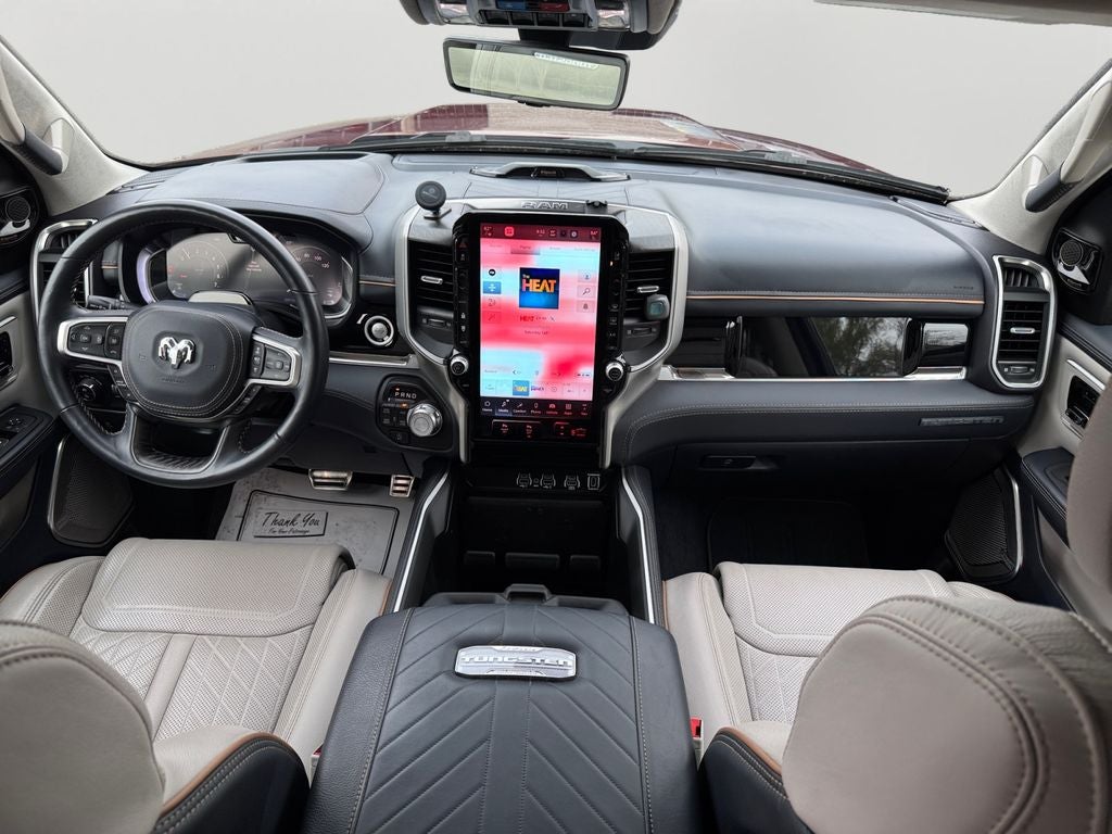 2025 Ram 1500 Tungsten Crew Cab 4x4 the most luxurious Ram truck ever built, combining high-output performance with premium craftsmanship for drivers across Jacksonville, St. Augustine, Orange Park, Fleming Island, and beyond. Powered by the high-output 3.0L Hurricane twin-turbo inline-6 engine paired with an 8-speed automatic transmission, this Tungsten delivers exceptional power and smooth acceleration, giving you the strength to handle towing and hauling while maintaining refined drivability. Finished in stunning Delmonico Red Pearl-Coat, this truck commands attention with its bold design, 22-inch premium wheels, LED lighting, and signature Tungsten styling details that set it apart from anything else on the road. Inside, the Tungsten trim takes luxury to another level. Premium leather bucket seats, 20-way power-adjustable front seats with massage functionality, a suede headliner, and a dual-pane panoramic sunroof create a first-class cabin experience. Rear passengers enjoy added comfort with spacious seating and thoughtful storage solutions. Technology is unmatched with a massive 14.4-inch Uconnect touchscreen, a 12-inch digital driver display, a front passenger interactive screen, and a head-up display. The 23-speaker Klipsch Reference Premiere sound system delivers an incredible audio experience, while dual wireless charging pads keep devices powered up. Advanced safety and driver-assist features include adaptive cruise control, active lane management, evasive steering assist, intersection collision assist, and hands-free active driving assist, giving you confidence and control on every drive. Built for capability as well as comfort, this Ram includes a Class IV hitch, power tailgate, and a large 33-gallon fuel tank, making it ready for both work and long-distance travel. If you're searching for a top-tier luxury truck in Jacksonville or surrounding areas that delivers cutting-edge technology, premium comfort, and serious performance, this 2025 Ram 1500 Tungsten stands in a class of its own. What sets us apart is our guest-centric approach and complete transparency in everything we do. Your experience always comes first, and were here to make your buying process simple, straightforward, and exceptional., 1500 Tungsten LEATHER, 4D Crew Cab, 3.0L I6, 8-Speed Automatic, 4WD, Delmonico Red Pearlcoat, Indigo/Sea Salt Leather, Navigation System, Quick Order Package 22V Tungsten.